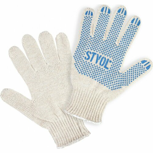 Перчатки рабочие ХБ с ПВХ покрытием белые, 42 гр, 150 пл, 7,5 класс (10 пар), STVOL SWG011 (1 шт.)