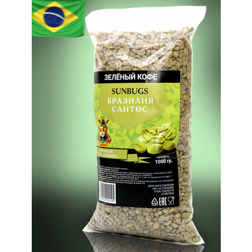 Зерно кофе зеленое Бразилия Сантос не обжаренное 1000гр