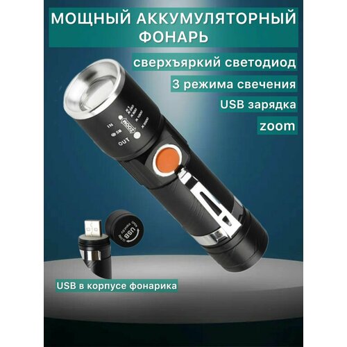 Мощный фонарь S18 с USB зарядкой аккумуляторный