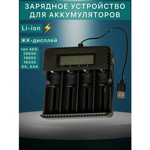 Зарядное устройство с USB портом с 4 слотами для АКБ типа 26650, 18650, 16340, ААА, АА
