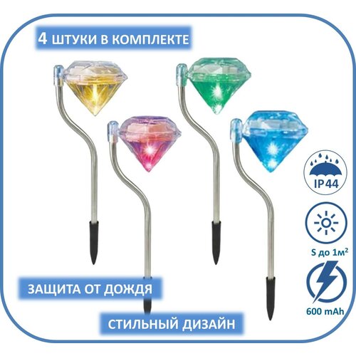 Садовые светильники на солнечной батарее «Алмаз» разноцветные, комплект 4 шт