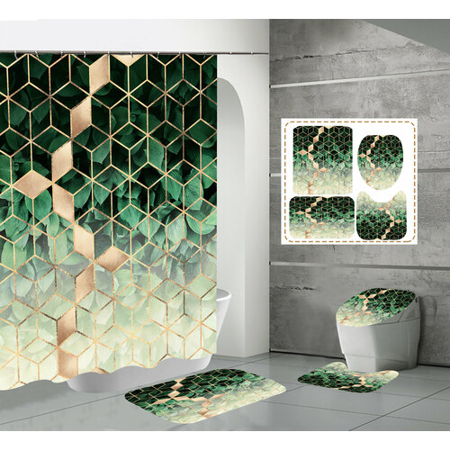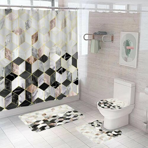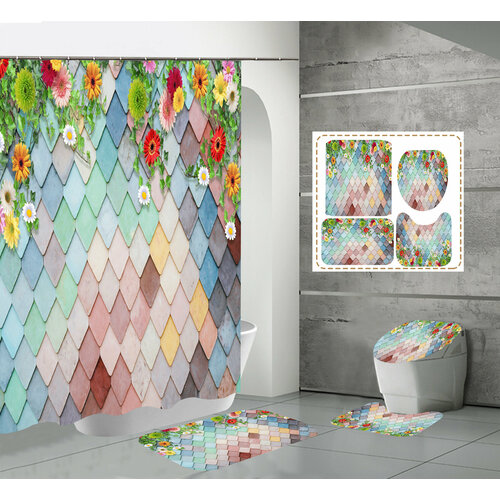 Набор для ванной комнаты 4 в 1, коврик для ванной, коврик для туалета, накладка на унитаз, шторка в ванную 180 на 180 см разноцветная плитка