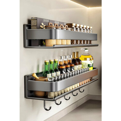 Кухонная подвесная полка для специй с крючками 60 cм