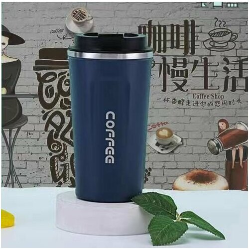 Термокружка для кофе , термостакан, 510мл, термос, автомобильная, из нержавеющей стали, с крышкой, непроливайка, металлическая, синяя