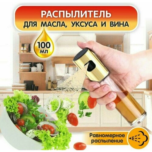 Спрей для масла и уксуса с дозатором-распылителем из стекла и пластика золотистый