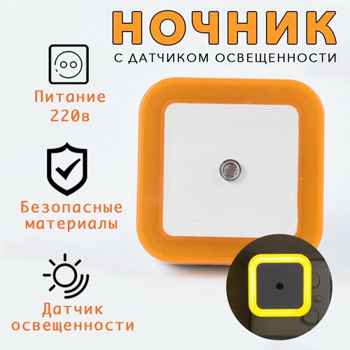 Светодиодный ночник для сна с автовыключением. Детский, с датчиком света и освещённости , в розетку, оранжевое свечение