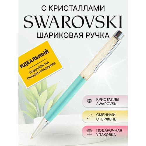 Ручка шариковая подарочная KristallyStrazy с кристаллами Swarovski Turquoise Pearl Crystal / Ручка Сваровски в замшевом футляре / Сменный стержень
