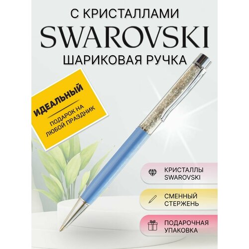 Шариковая ручка KristallyStrazy с кристаллами Swarovski Blue Pearl Grey / Подарочная Ручка со стразами Сваровски