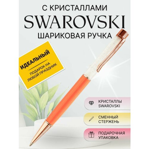 Шариковая ручка с кристаллами Swarovski Orange Gold / Ручка подарочная женская со стразами Сваровски / В замшевом футляре