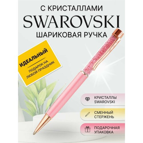 Шариковая ручка с кристаллами Swarovski Light Rose Gold / Ручка подарочная женская со стразами Сваровски / В замшевом футляре