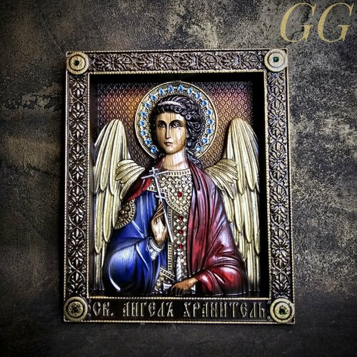 Икона "Ангел Хранитель" 23х20см, дуб, камни Swarovski, поталь, сусальное золото, ручная отрисовка