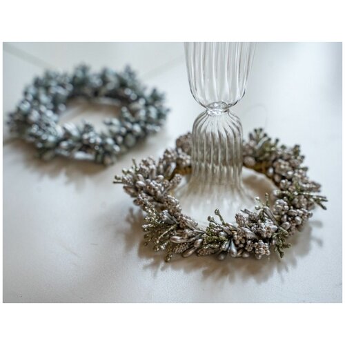 Мини-венок для свечи и декорирования (малый), серебряный, 3.5 см, Swerox