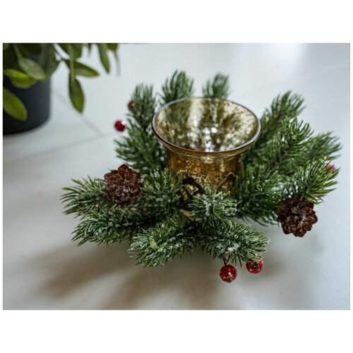 Мини-венок для свечи и декорирования "Подарок от ёлочки", 15 см, Swerox