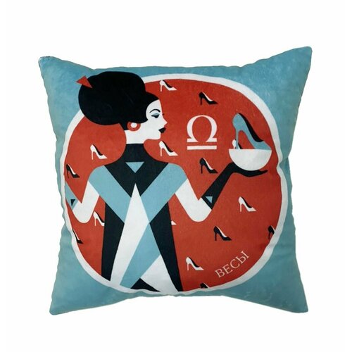 Подушка декоративная "Знак Зодиака Весы", подушка двусторонняя из велюра, подарок на День Рождения, знаки зодиака и звезды
