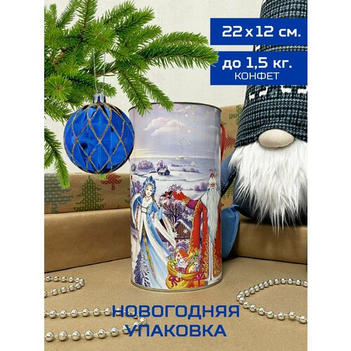 Тубус новогодний "Дед Мороз и Снегурочка", упаковка подарочная, для конфет и подарков, новогодняя упаковка