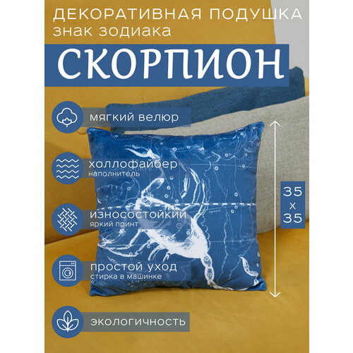 Подушка декоративная "Знак Зодиака Скорпион", подушка двусторонняя из велюра, знаки зодиака и звезды