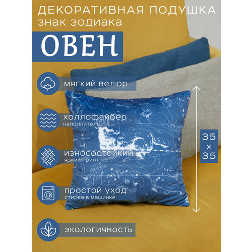 Подушка декоративная "Знак Зодиака Овен", подушка двусторонняя из велюра, подарок на День Рождения, знаки зодиака и звезды