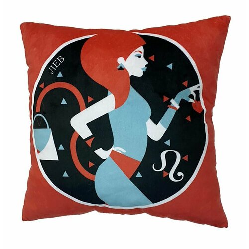 Подушка декоративная "Знак Зодиака Лев", двусторонняя из велюра, подарок на День Рождения, знаки зодиака и звезды
