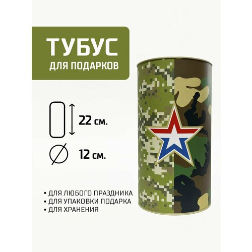 Подарочный тубус, праздничная упаковка, коробка для подарков, туба картонная 22х12 см, 23 февраля, звезда, камуфляж
