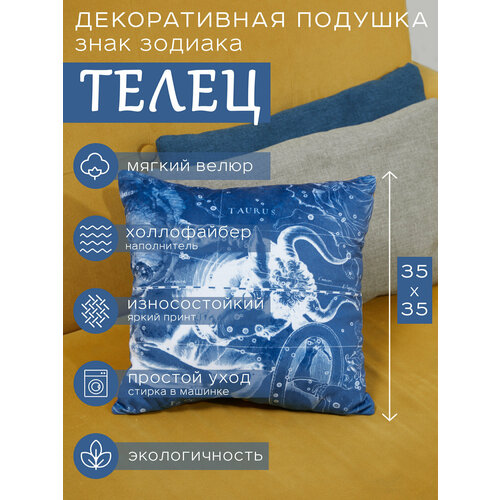 Подушка декоративная "Знак Зодиака Телец", подушка двусторонняя из велюра, знаки зодиака и звезды