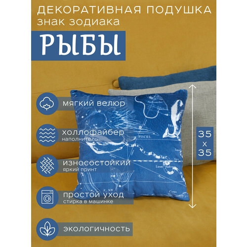 Подушка декоративная "Знак Зодиака Рыбы", подушка двусторонняя из велюра, знаки зодиака и звезды