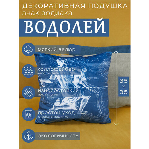 Подушка декоративная "Знак Зодиака Водолей", подушка двусторонняя из велюра, знаки зодиака и звезды