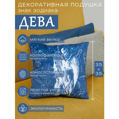 Подушка декоративная "Знак Зодиака Дева", подушка двусторонняя из велюра, подарок на День Рождения, знаки зодиака и звезды
