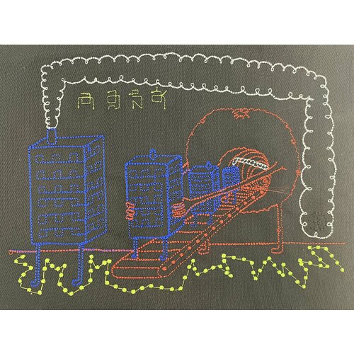 Мешок с вышивкой для сменки / домики / Мешок / 40 см (cm) х 35 см (cm) / Custom bag with embroidery / Bag with lining and Velcro pocket. / SZ