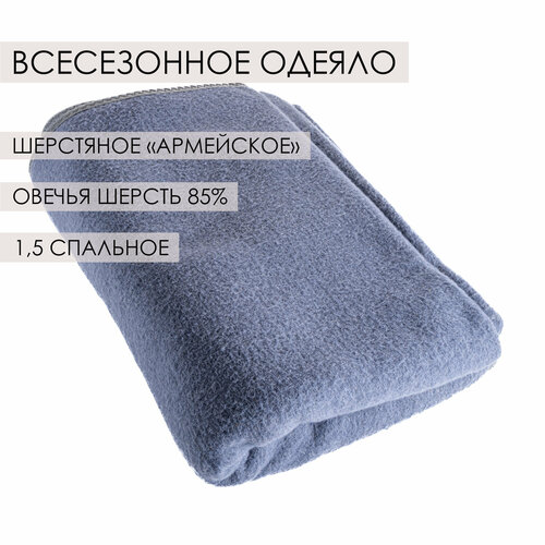Одеяло шерстяное армейское, 85% овечья шерсть, 140х220 см, серо-синий