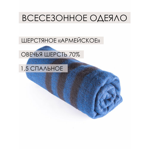 Одеяло армейское шерстяное 70%, 205х140см, синее, всесезонное, 1,5-спальное