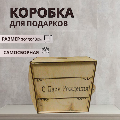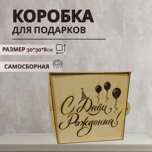 Подарочная коробка деревянная "С днем рождения" с наполнителем №0043 размер 30*30*8см