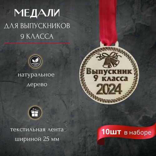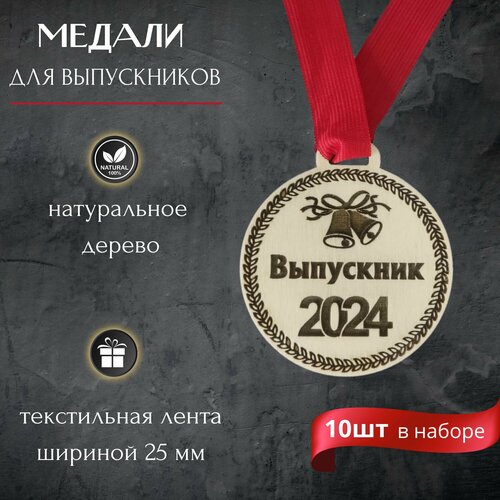Деревянная медаль выпускник 2024, 10 шт, медаль детская сувенирная