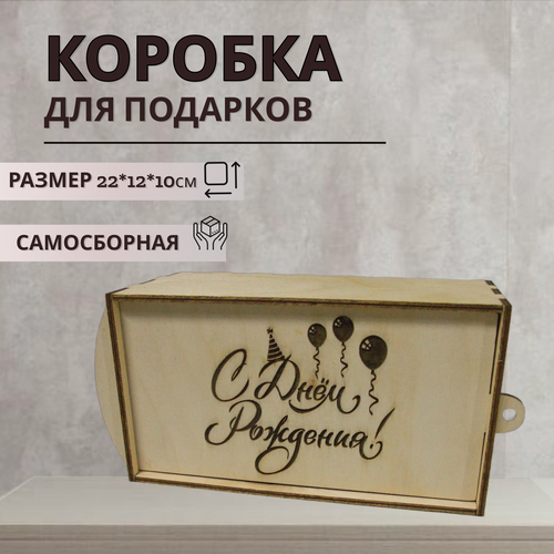 Деревянная подарочная коробка "С днем рождения" с наполнителем №0043 размер 22*12*10см
