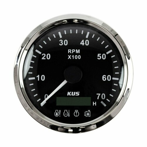 Тахометр 0-7000 об/мин с аварийной сигнализацией делитель 1-10, циферблат, нержавеющий ободок