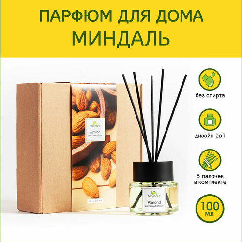 Диффузор ароматический аромадиффузор ароматизатор парфюм аромат стойкий для дома с палочками Tanjeree Миндаль 100 мл.