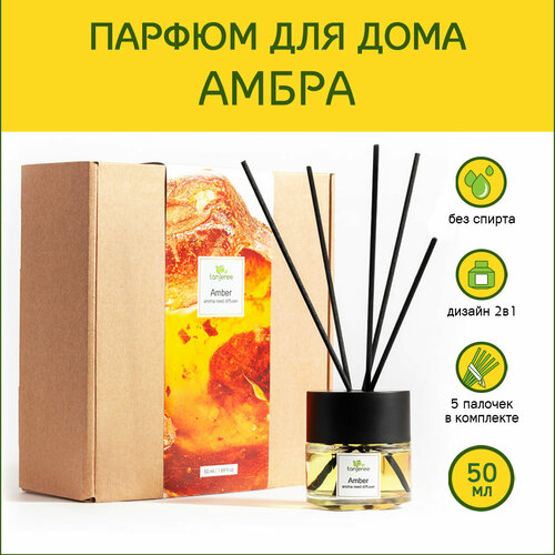 Диффузор ароматический аромадиффузор ароматизатор парфюм аромат стойкий для дома с палочками Tanjeree Амбра 50 мл.