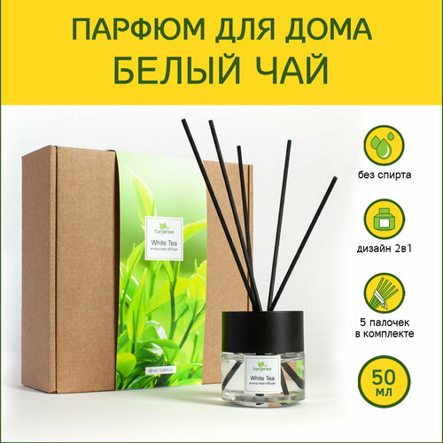 Диффузор ароматический аромадиффузор ароматизатор парфюм аромат стойкий для дома с палочками Tanjeree Белый Чай 50 мл.