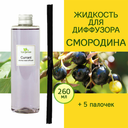 Жидкость ароматическая наполнитель рефил для аромадиффузора для диффузора для дома с палочками Tanjeree Смородина 260 мл.