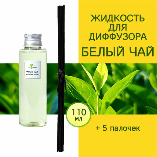 Жидкость ароматическая наполнитель рефил для аромадиффузора для диффузора для дома с палочками Tanjeree Белый Чай 110 мл.