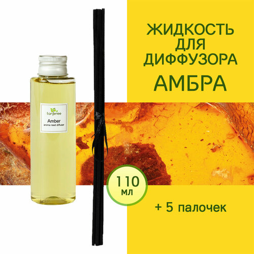 Жидкость ароматическая наполнитель рефил для аромадиффузора для диффузора для дома с палочками Tanjeree Амбра 110 мл.