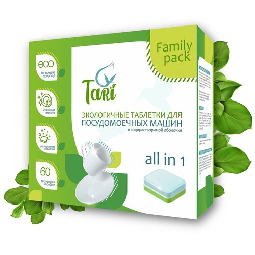 Экологичные таблетки для посудомоечных машин TARI 60 шт, ALL in 1