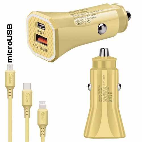 Зарядное устройство автомобильное USB + кабель Micro USB (Type-C, 2400mA) TDS TS-CAU54 Желтое