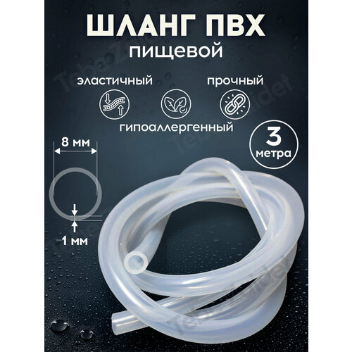 Шланг пищевой прозрачный трубка ПВХ 3 метров, 8мм диаметр