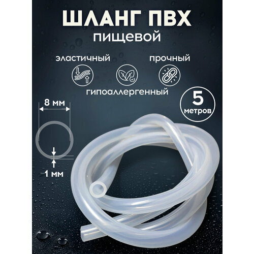 Шланг пищевой прозрачный трубка ПВХ 5 метров, 8мм диаметр