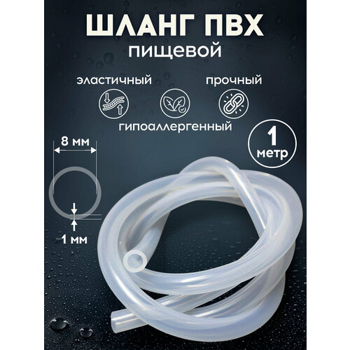 Шланг пищевой прозрачный трубка ПВХ 1 метров, 8мм диаметр