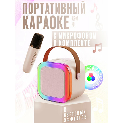 Детская караоке система/Караоке система беспроводным микрофон и колонкой (бежевый)/(Беспроводной, Живой вокал, Портативная колонка)