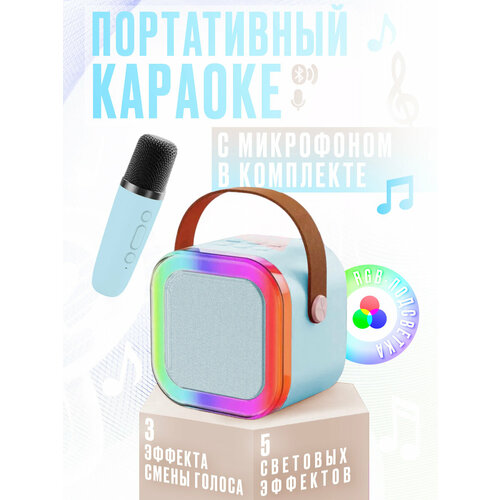 Детская караоке система/Караоке система беспроводным микрофонам и колонкой (голубой)/(Беспроводной, Живой вокал, Портативная колонка)