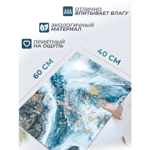 Коврик для ванной комнаты 40x60 см мрамор голубая лагуна