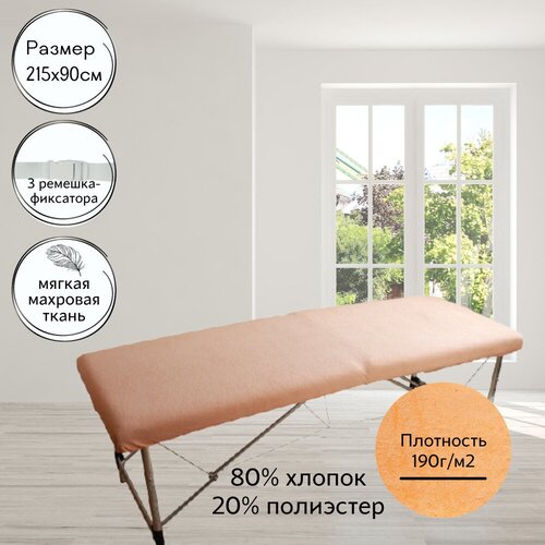 Махровый чехол на кушетку на резинке стрейч, цвет светлый персик