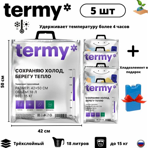 Термопакет termy, 42х50 см (18 литров), 5 штук